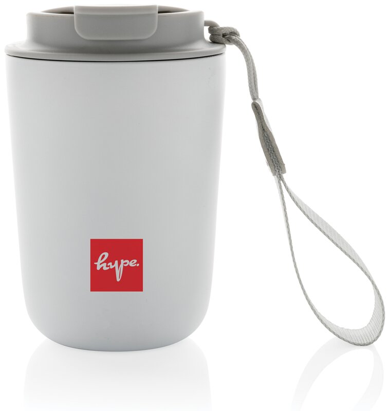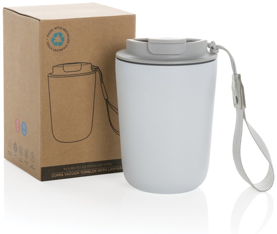Termohrnek Cuppa s nepropustným flip lid uzávěrem a praktickým lanyardem pro pohodlné přenášení. Vyrobený z RCS recyklovaných materiálů. RCS (Recycled Claim Standard) je globální standard, který umožňuje ověřit použití recyklovaného materiálu v produktu napříč celým dodavatelským řetězcem. Celkový podíl recyklátu dle váhy produktu: 74 %. Objem: 380 ml.
