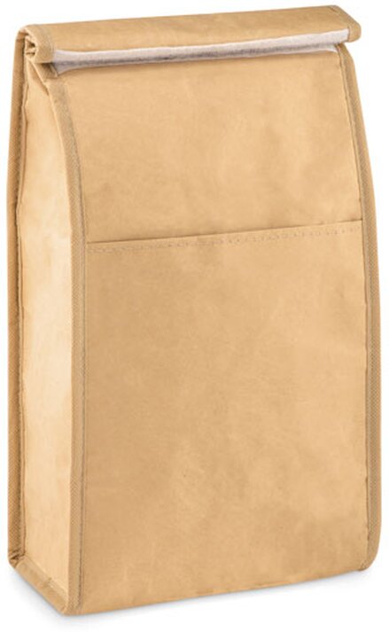 Chladící obědová taška Paperlunch je vyrobená ze tkaného papíru s izolační vrstvou. Taška díky této úpravě dokáže dlouhou dobu udržet teplotu vložených potravin. Zajímavostí je rovněž přední kapsa. Objem tašky je 2,3 L