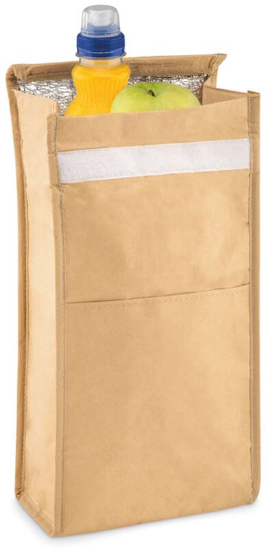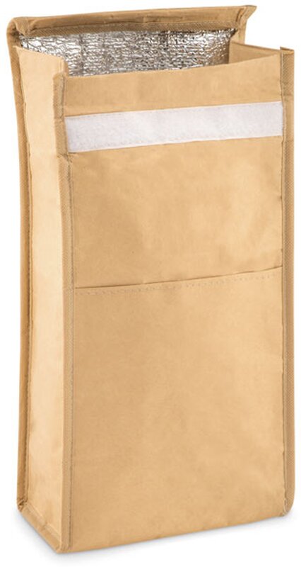 Chladící obědová taška Paperlunch je vyrobená ze tkaného papíru s izolační vrstvou. Taška díky této úpravě dokáže dlouhou dobu udržet teplotu vložených potravin. Zajímavostí je rovněž přední kapsa. Objem tašky je 2,3 L