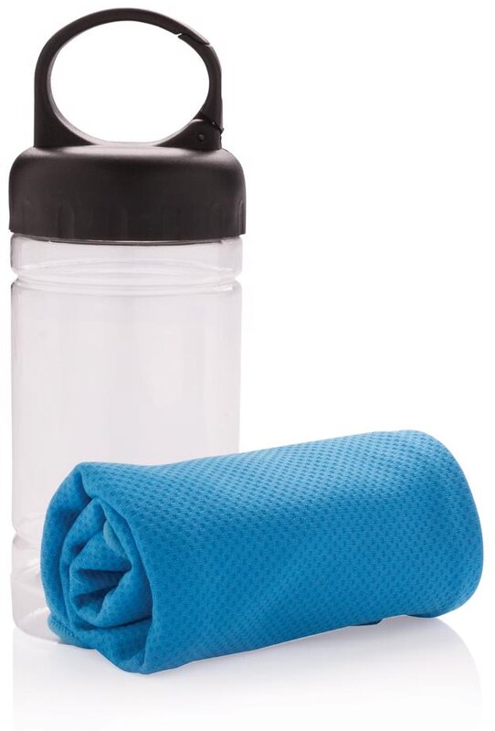 Ručník z mikrovlákna je skvělý k osvěžení při sportu. Jednoduše přidejte studenou vodu do láhve, čímž se ručník ochladí a při použití je nádherně osvěžující. Láhev je vyrobena z PP s víčkem z ABS s karabinou pro upnutí. Funkce blokování až 98 % slunečního záření s UV50+ ochranou. Velikost ručníku: 77 x 30cm.
