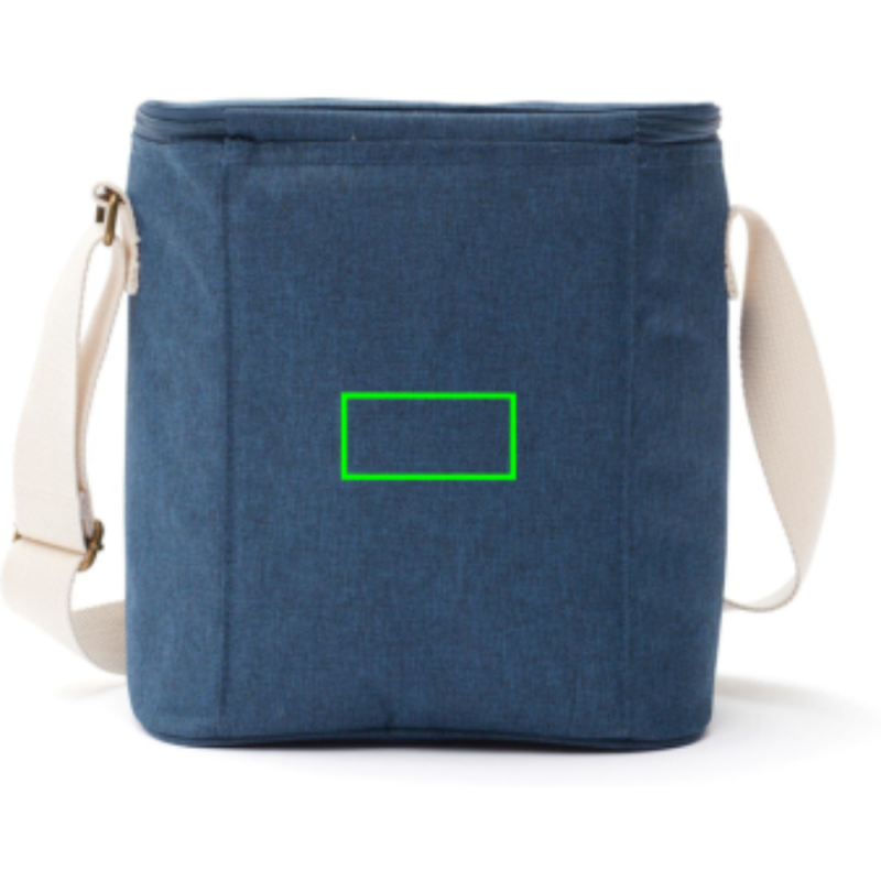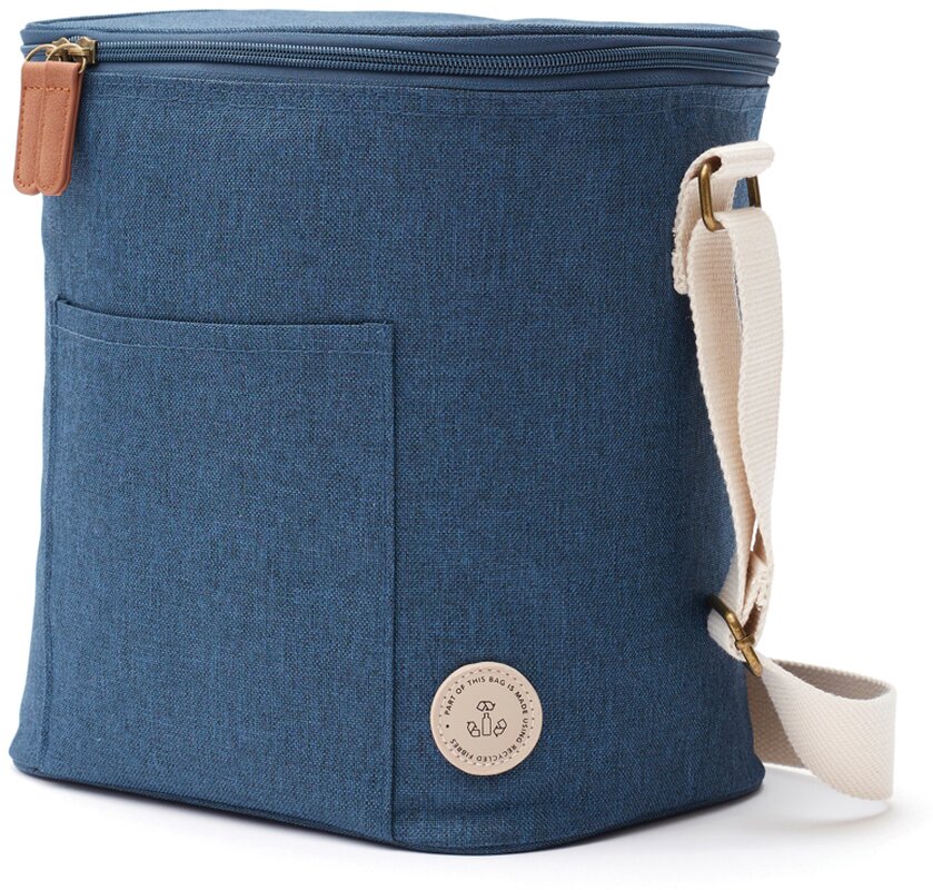 Tato moderní chladicí taška s čistým vzhledem bude vaším věrným přítelem na příštím pikniku. Je o něco menší, takže se snadno nosí přes rameno i v ruce. Chladicí taška je vyrobena z melanžové tkaniny doplněné o PU detaily, díky nimž je stejně módní jako běžná taška. Vyrobena z 50 % z polyesteru z recyklovaných PET lahví a detaily jsou z PU. Díky vnitřní povrchové úpravě z PEVA se snadno čistí.