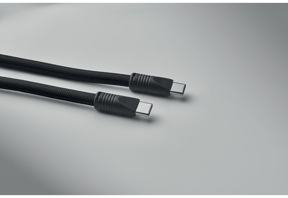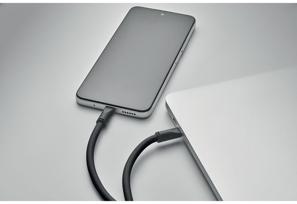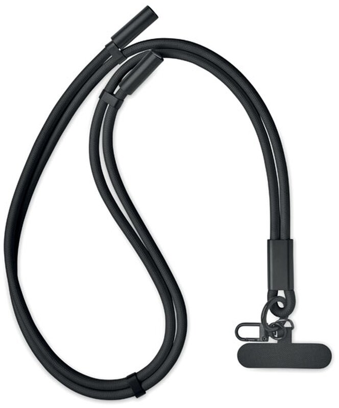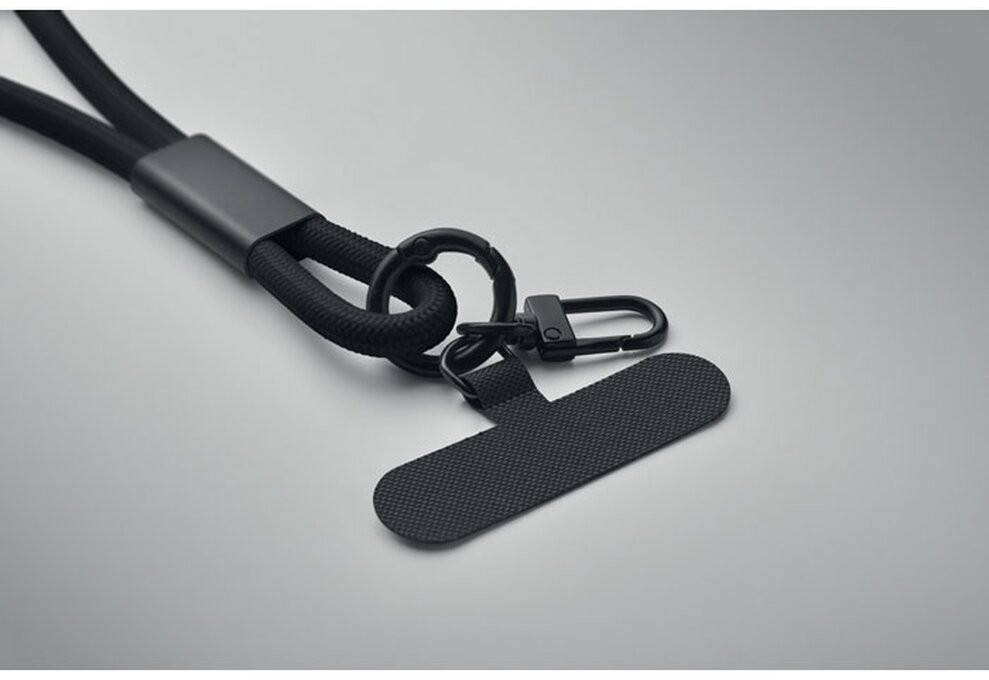 Šňůrka na krk s držákem telefonu a 60W nabíjecím a datovým kabelem type-C na type-C z materiálu RPET.