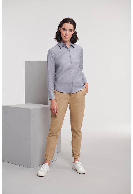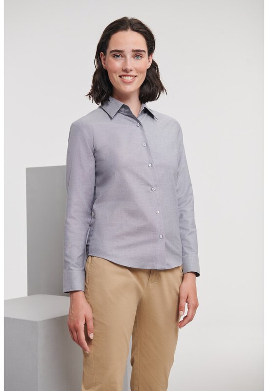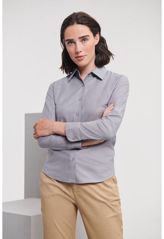 Dámská košile s dlouhým rukávem 932F, RUSSELL Oxford Stříbrná 024.658