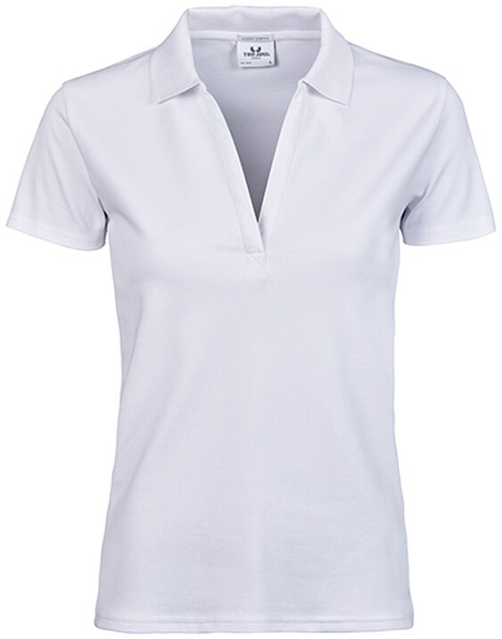 Dámská luxusní polokošile s výstřihem do V, TJ1409 - Stretch V-Neck Polo Bílá 028.198