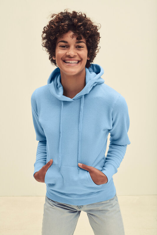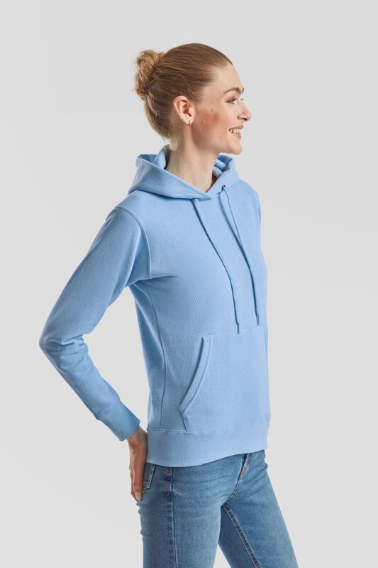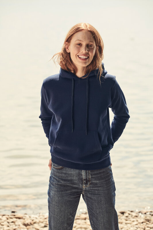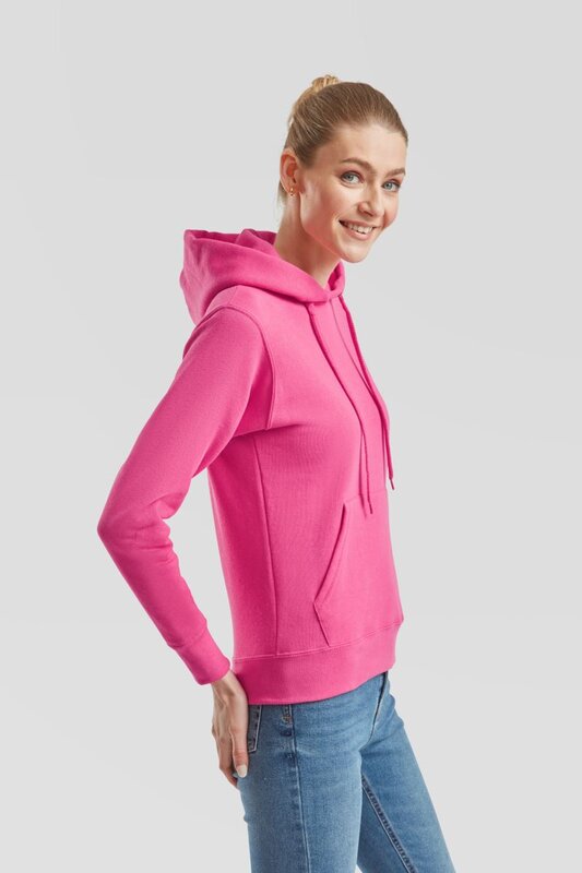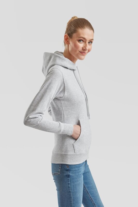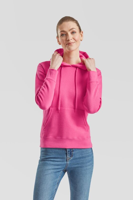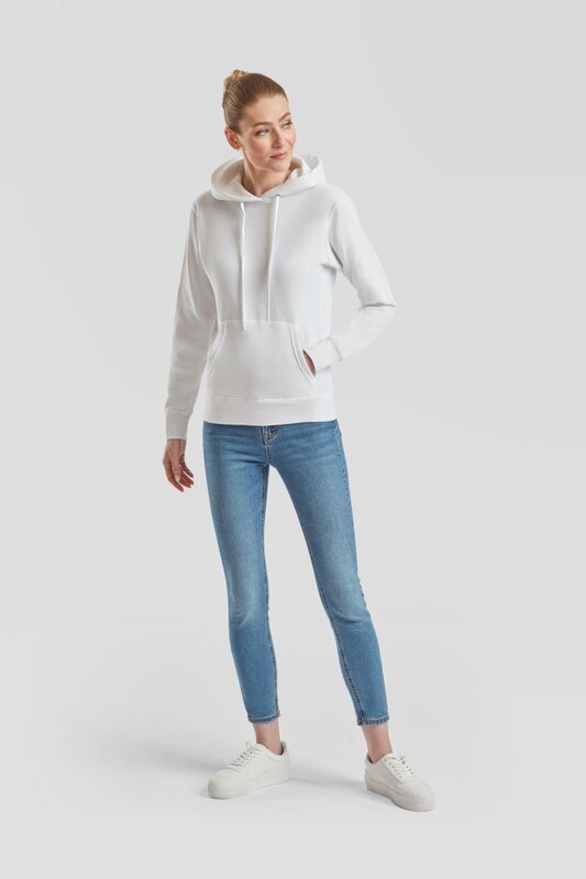 Dámská mikina s kapucí, která nabízí pohodlný střih, příjemný materiál a čistý design, díky kterému je ideální pro každodenní nošení, týmové outfity i reklamní účely. Díky příměsi Lycra® v manžetách skvěle drží tvar a přiléhá bez ztráty komfortu.