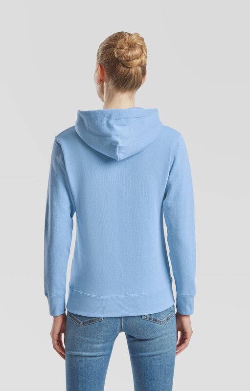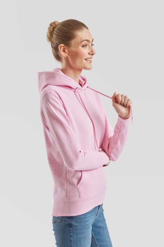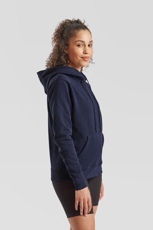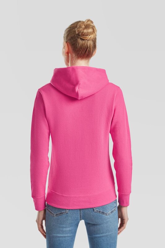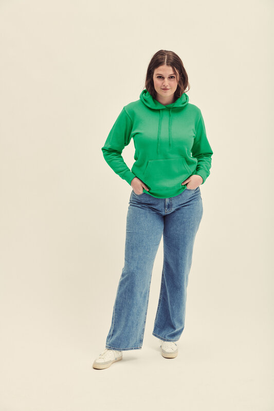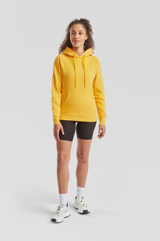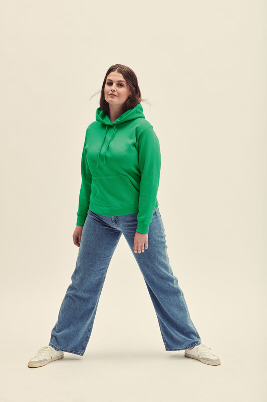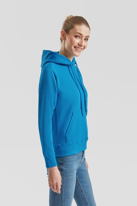 Dámská mikina s kapucí, která nabízí pohodlný střih, příjemný materiál a čistý design, díky kterému je ideální pro každodenní nošení, týmové outfity i reklamní účely. Díky příměsi Lycra® v manžetách skvěle drží tvar a přiléhá bez ztráty komfortu.