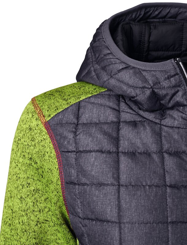 Pletená fleecová bunda ve stylovém mixu materiálů, Měkká, teplá a snadno udržovatelná látka v melange vzhledu, Kontrastní švy, nastavitelná kapuce, 2 boční a 2 vnitřní kapsy na zip