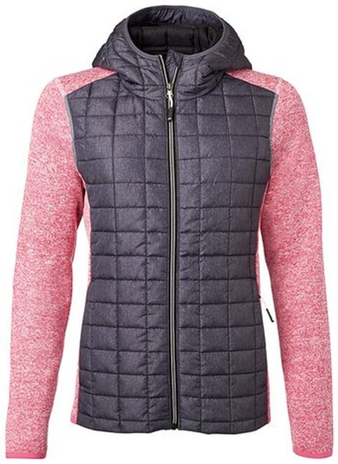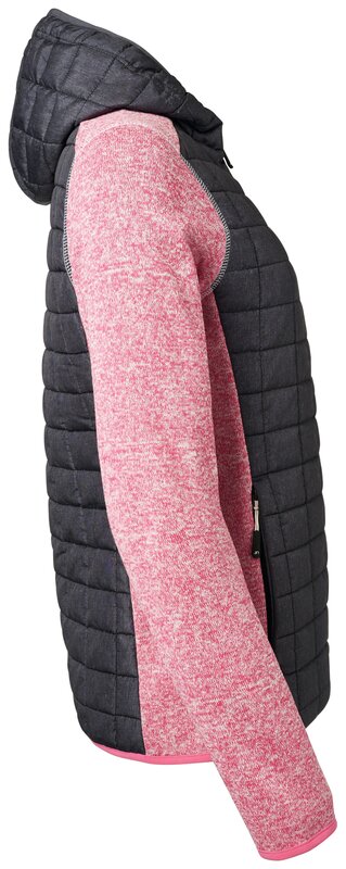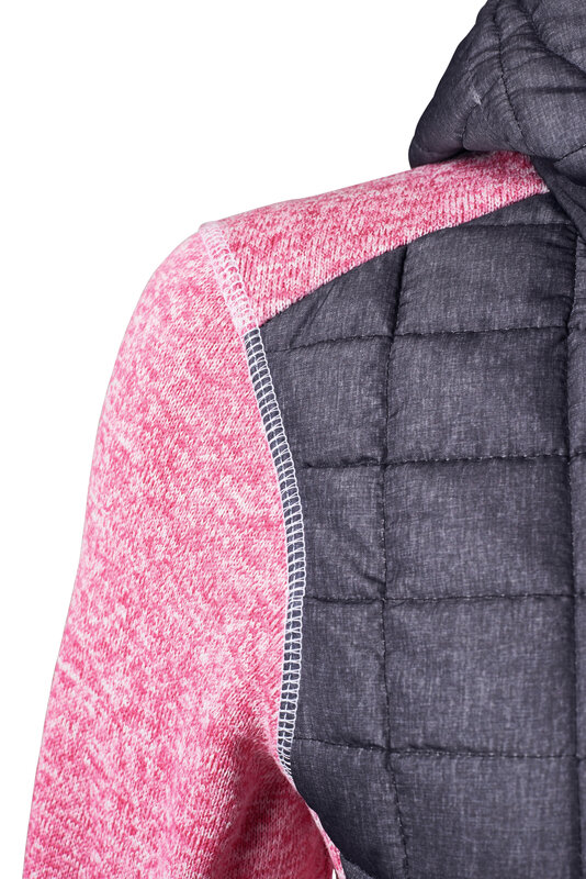 Dámská prošívaná bunda s pletenými rukávy JN771 Růžový melír-antracitový melír 010.850