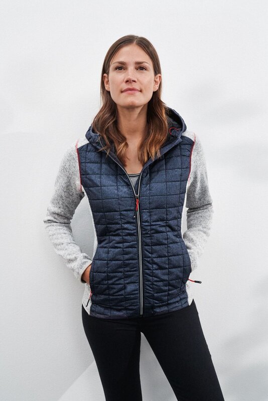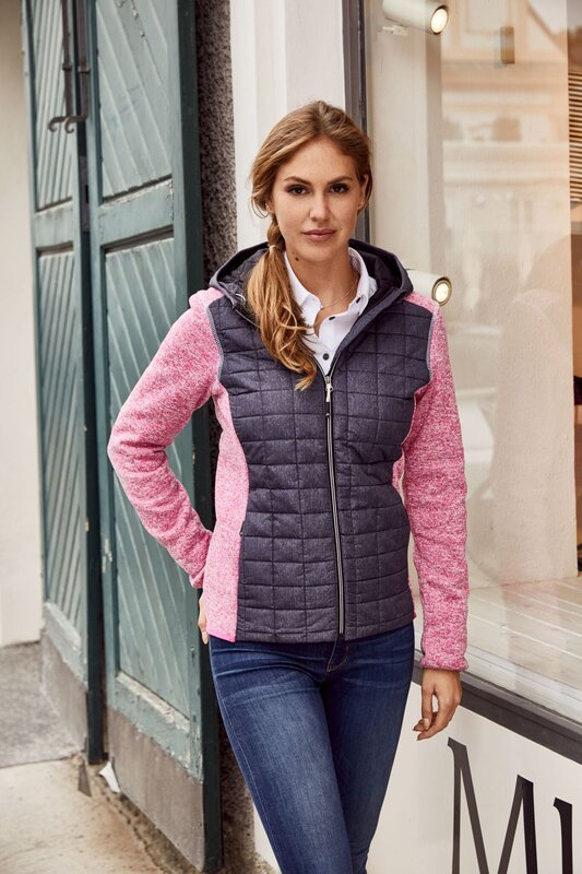 Dámská prošívaná bunda s pletenými rukávy JN771 Královský modrý melír-antracitový melír 010.850