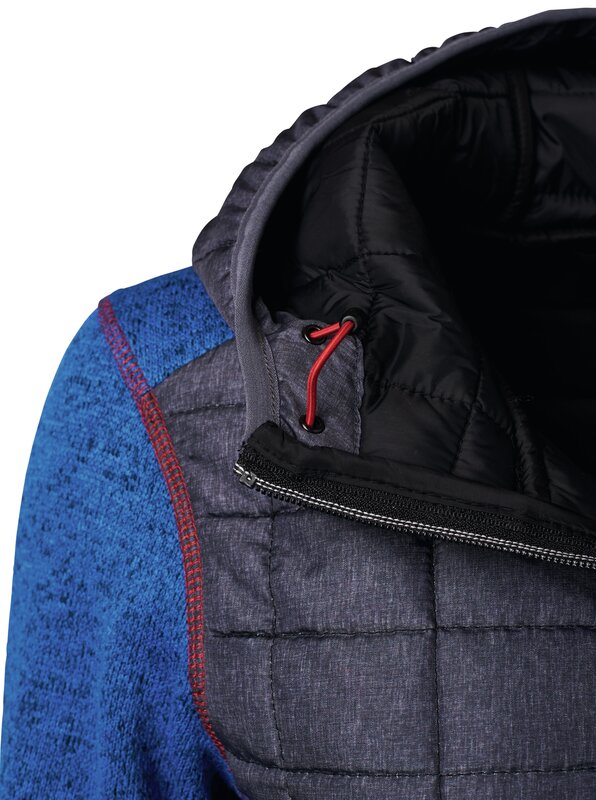 Pletená fleecová bunda ve stylovém mixu materiálů, Měkká, teplá a snadno udržovatelná látka v melange vzhledu, Kontrastní švy, nastavitelná kapuce, 2 boční a 2 vnitřní kapsy na zip