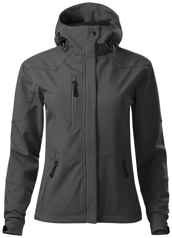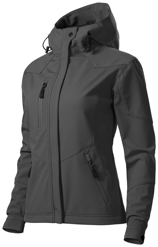 Dámská softshellová bunda s kontrastními detaily. Bunda má efektní texturu softshellu - úprava NANOtex® zabraňující průniku vody. Bunda má dvě přední kapsy a jednu náprsní kapsu na zip. Kapuce je na stažení šňůrkou, kapuce a spodní lemy rukávů jsou nastavitelné suchým zipem. Bunda má projmutý střih.