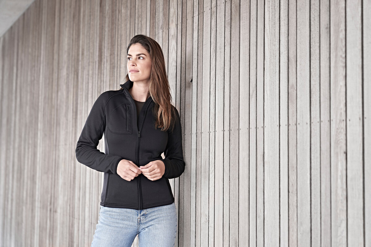 Dámská strečová fleecová bunda s vypasovaným střihem.