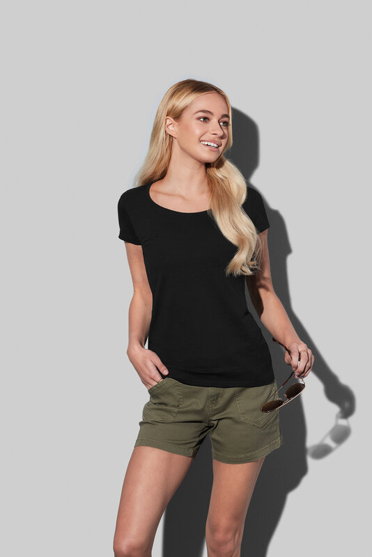 Pohodlné tričko s přiléhavým střihem a širším výstřihem zvýrazňuje ženskou siluetu a zároveň poskytuje volnost pohybu díky obsahu elastanu. Zesílené ramenní švy zajišťují vyšší odolnost při častém nošení.