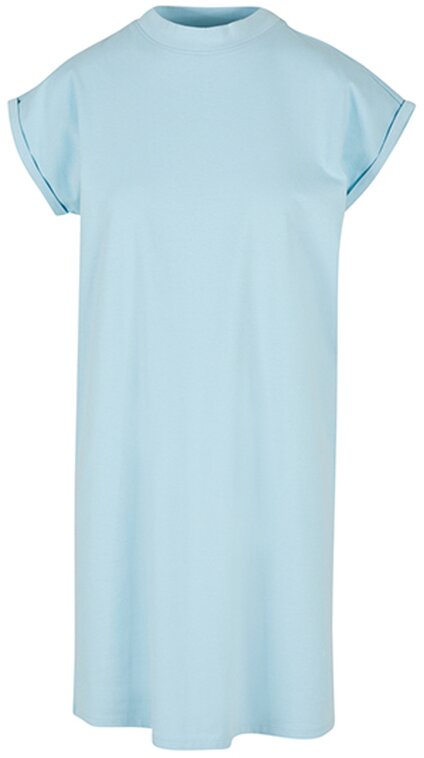 Stylový kousek mezi šaty a tričkem, který má rozšířená ramena, krátké ohrnovací rukávy a decentní mini stojáček, který dodává šmrnc. Ušité z příjemné bavlněné tkaniny (200 g/m²), která se dobře nosí i snadno udržuje.