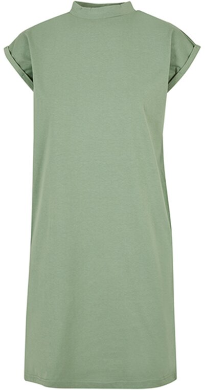 Stylový kousek mezi šaty a tričkem, který má rozšířená ramena, krátké ohrnovací rukávy a decentní mini stojáček, který dodává šmrnc. Ušité z příjemné bavlněné tkaniny (200 g/m²), která se dobře nosí i snadno udržuje.