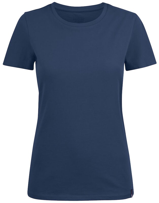 Kvalitní dámské dámské tričko s kulatým výstřihem a dvouvrstvým lemem u krku.