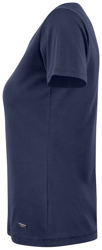 Kvalitní dámské tričko s kulatým výstřihem navržené pro každodenní pohodlí i styl. Díky příjemné směsi bavlny a elastanu dobře sedí na těle a drží tvar i po opakovaném nošení. Moderní střih a decentní kovový štítek u spodního lemu dodávají tričku reprezentativní vzhled, vhodný jak pro volnočasové aktivity, tak pro branding.