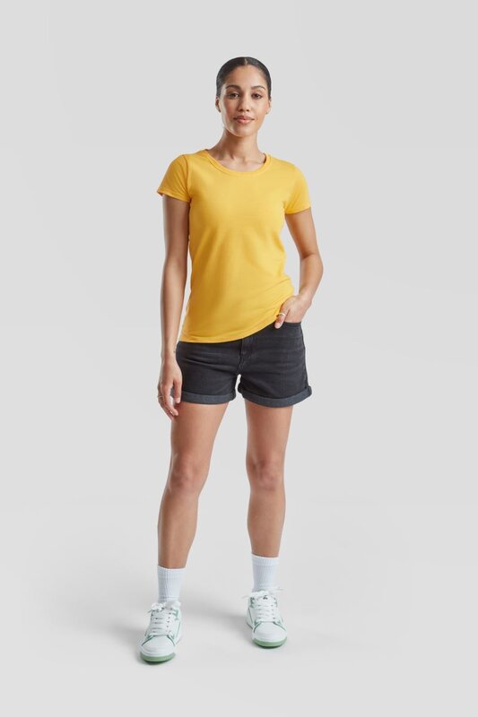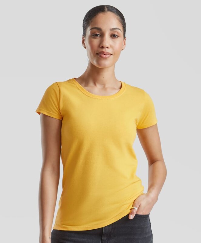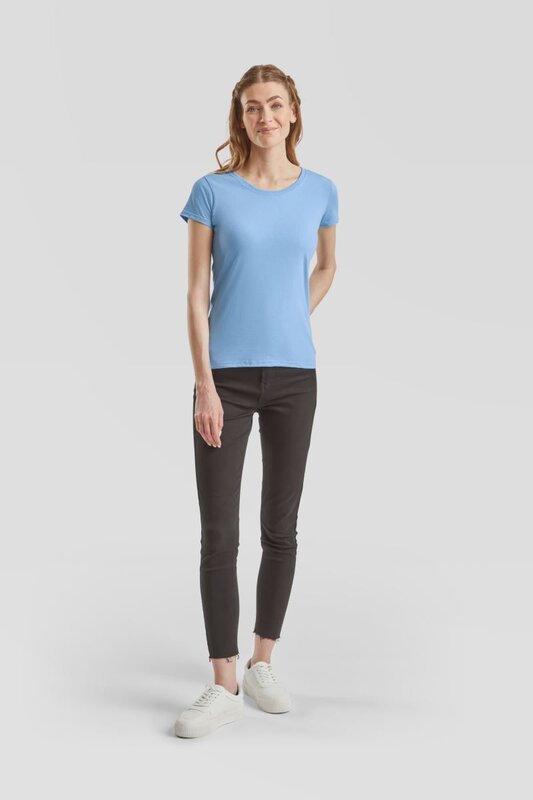 Dámské tričko s vypasovaným, delším střihem. Žebrovaný výstřih z bavlny a Lycry® s krční lemovkou tón v tónu 165g/m², 100% bavlna. pratelné na 40°, lze sušit v sušičce