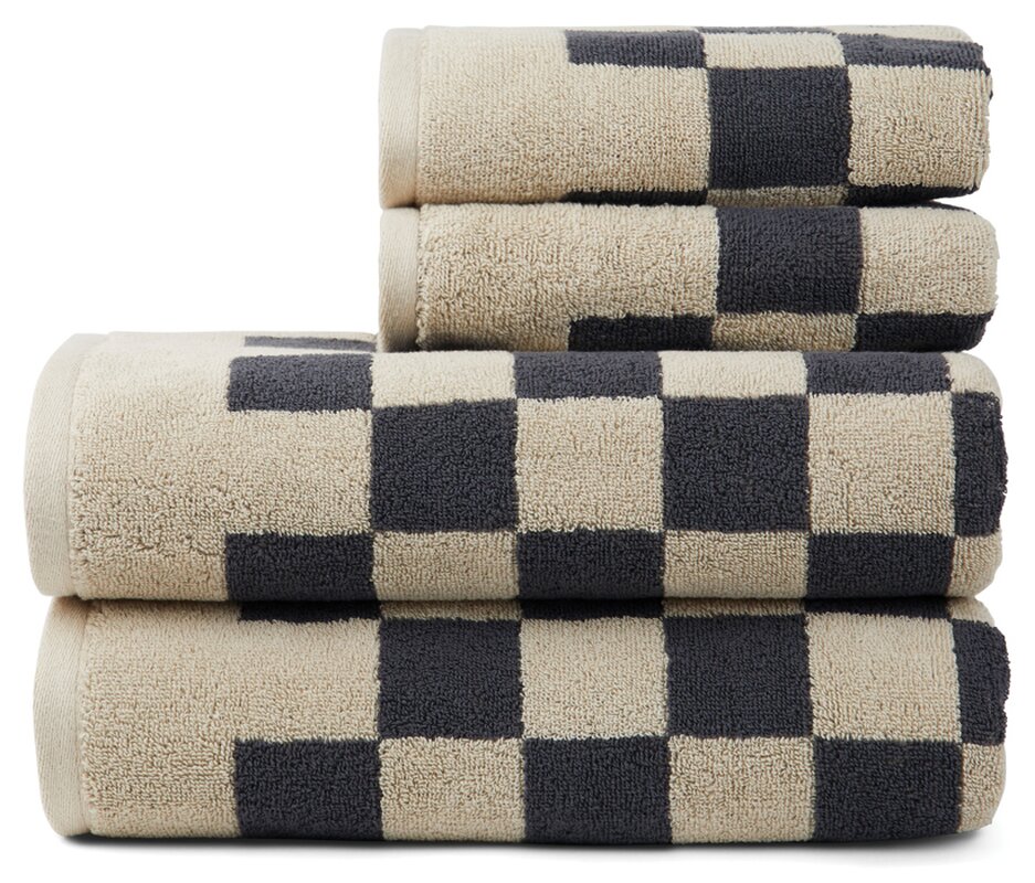 Sada ručníků se vzorem šachnovnice a gramáží 500 g/m2 nabízejí dobrou savost a měkkost. Sada obsahuje dva ručníky o rozměru 135x165cm a dva menší praktické ručníky o rozměru 65x40cm. Každá sada je pečlivě zabalena v obalu s certifikací FSC®.