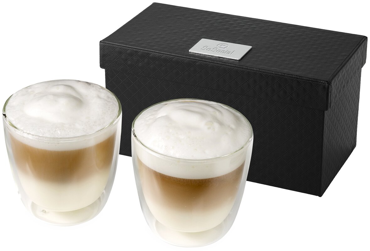 Dvoustěnné šálky na kávu BODA. Sada obsahuje 2 ks. Vyrobeno z borosilikátového skla. Dvojitá stěna vás ochrání před nepříjemným pálením rukou od horké kávy. Dodáváno v luxusní černé dárkové krabičce vč. kovového plíšku pro logo. Objem: 80 ml (2x 80ml).