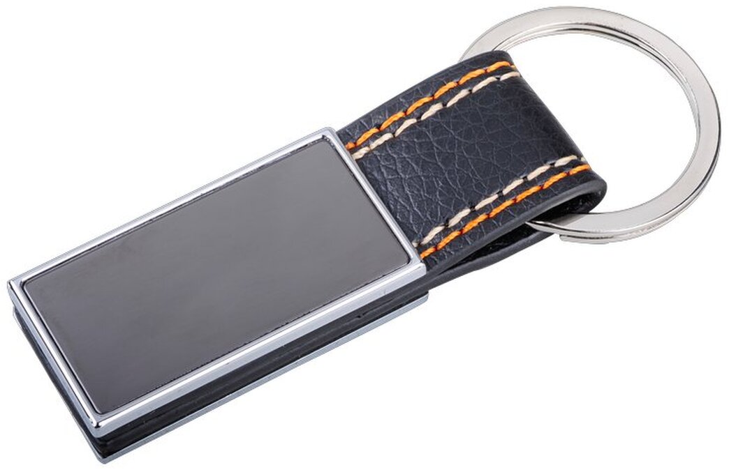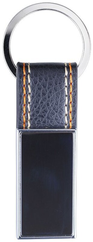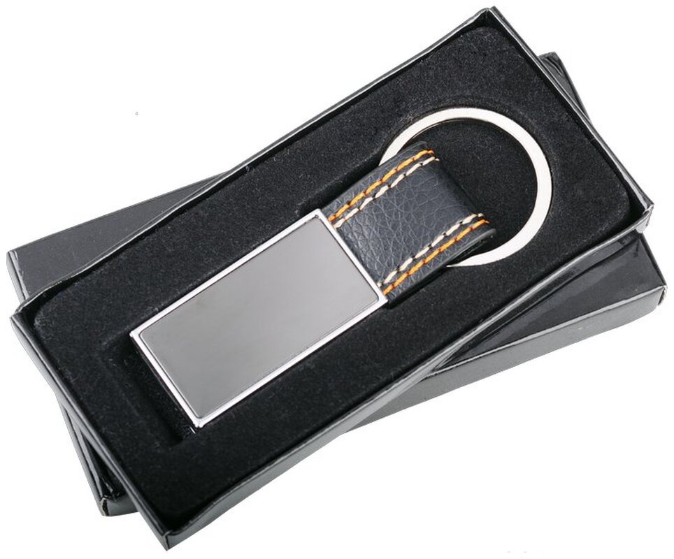 Přívěsek na klíče z kovu s PU a prošíváním. Dodáváno v černé dárkové krabičce.