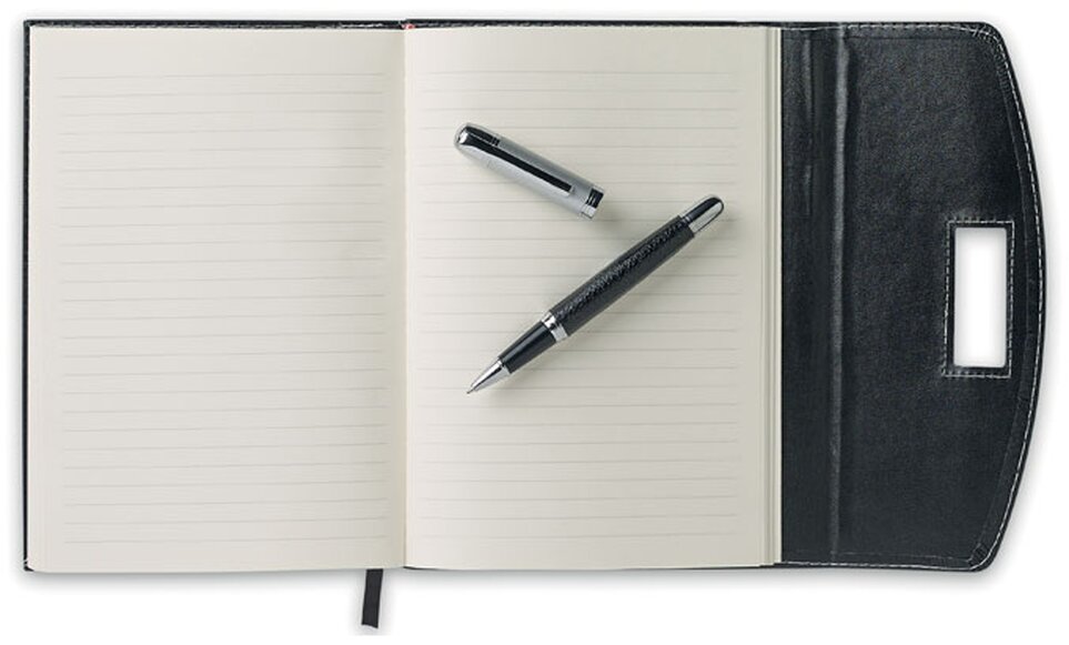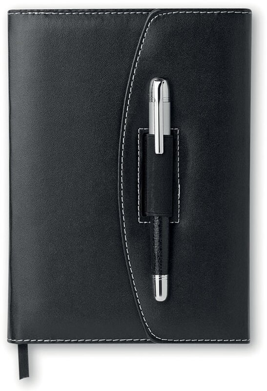 Desky na dokumenty A5 včetně 120 stránek s linkovaným papírem a kovovým perem. PU materiál.
