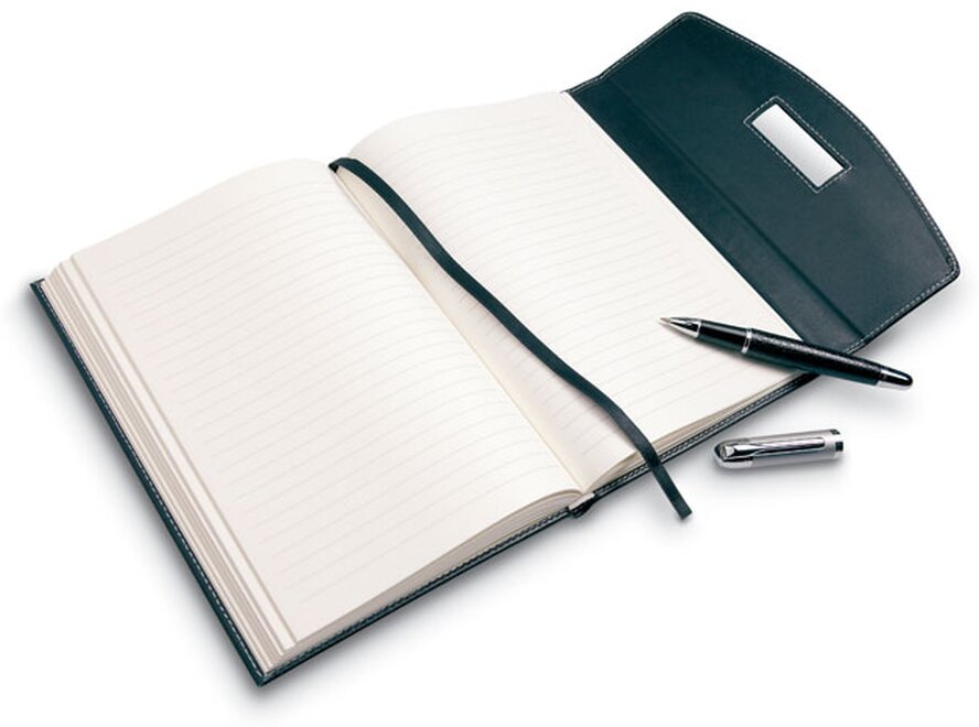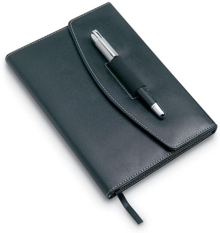 Desky na dokumenty A5 včetně 120 stránek s linkovaným papírem a kovovým perem. PU materiál.