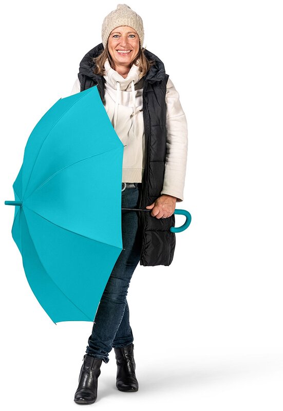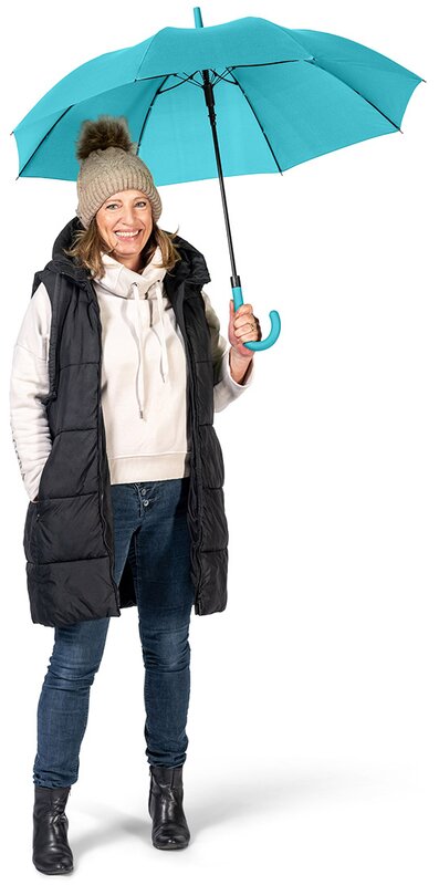 Pohodlná automatická funkce pro rychlé otevírání, vysoce kvalitní systém odolný proti větru pro maximální flexibilitu rámu v bouřkových podmínkách, flexibilní sklolaminátová žebra, robustní ocelová hřídel, Soft-Touch rukojeť a vrchní kryt v barevném ladění, rukojeť s integrovaným tlačítkem a možností reklamního štítku , vyšší ochrana proti korozi díky hřídeli z pozinkované oceli.