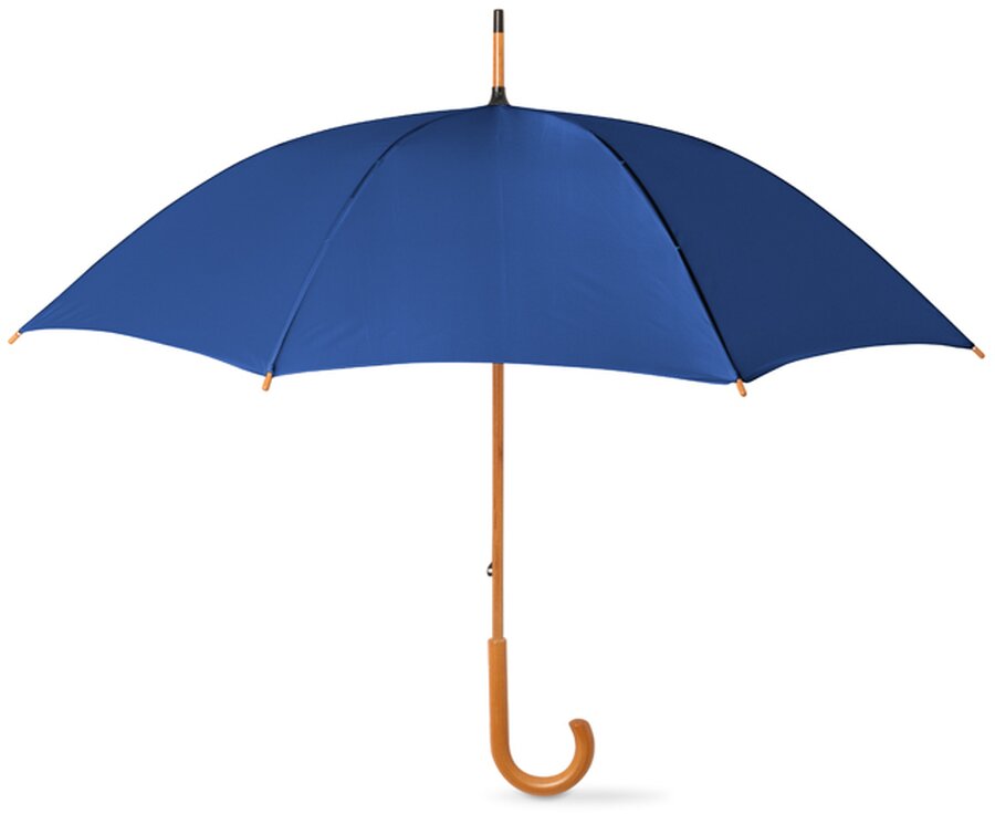 Elegantní deštník s dřevěnou tyčí a zahnutou rukojetí je praktickým a stylovým doplňkem pro deštivé dny. Díky kovové konstrukci se žebry a dřevěným hrotům nabízí pevnost a dlouhou životnost. Automatické otevírání zajišťuje pohodlné použití jednou rukou.