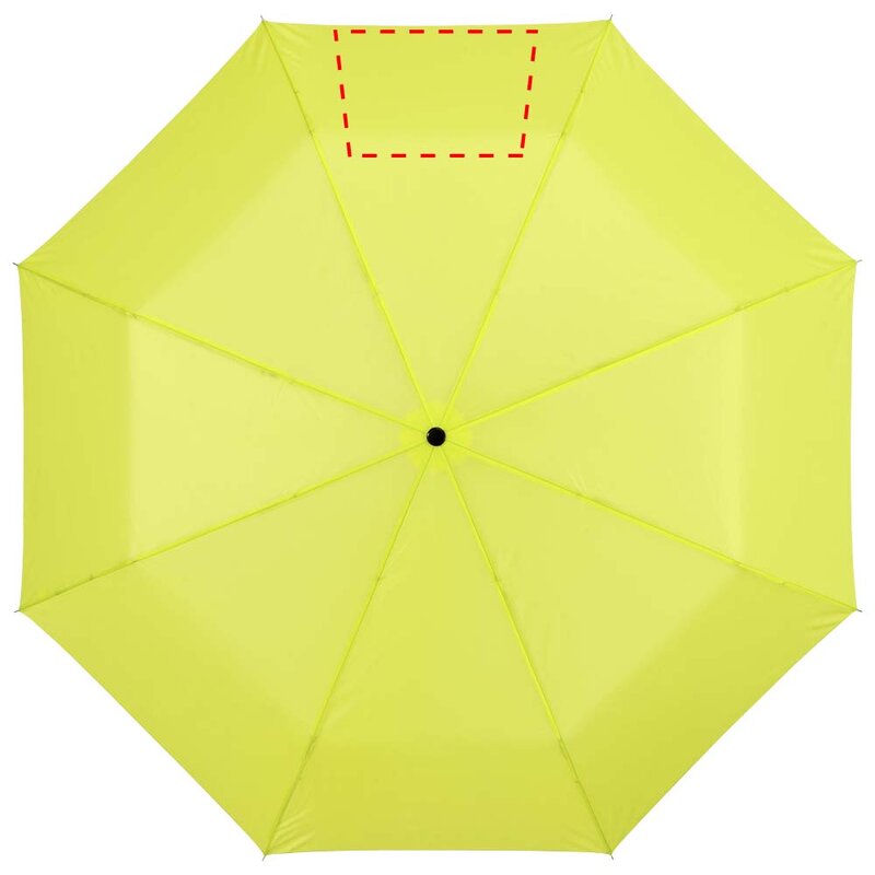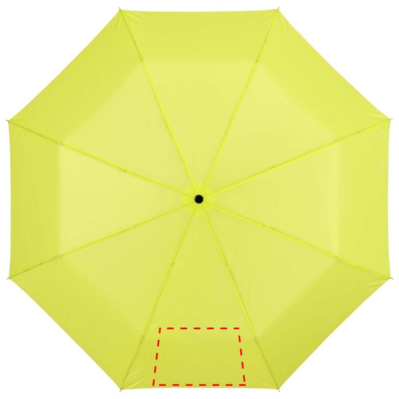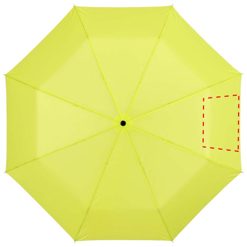 Trojdílný deštník 21,5". Deštník 21,5" s kovovou konstrukcí, kovovými žebry a plastovou rukojetí. Deštník je dodáván v pouzdře. Polyester.