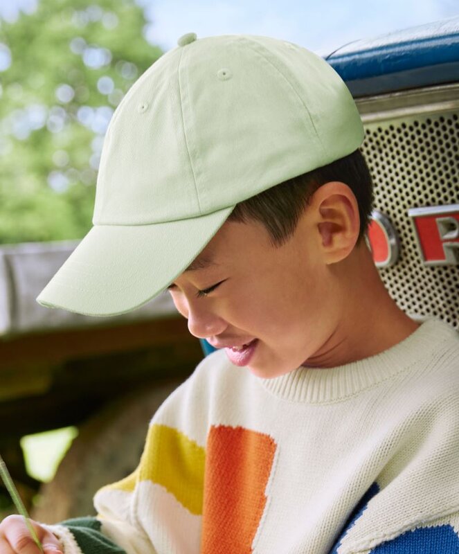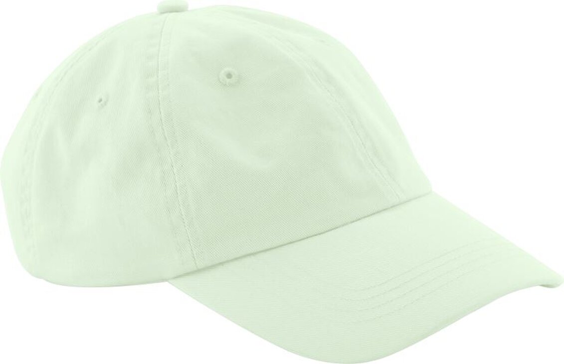 Předtvarovaný kšilt, měkká, nestrukturovaná oblast hlavy, obšité větrací otvory, látkový pásek s kovovým zapínáním, knoflík bezpečný pro děti, štítek TearAway, pouze čistit houbičkou, nesmí se prát 100% chino bavlna