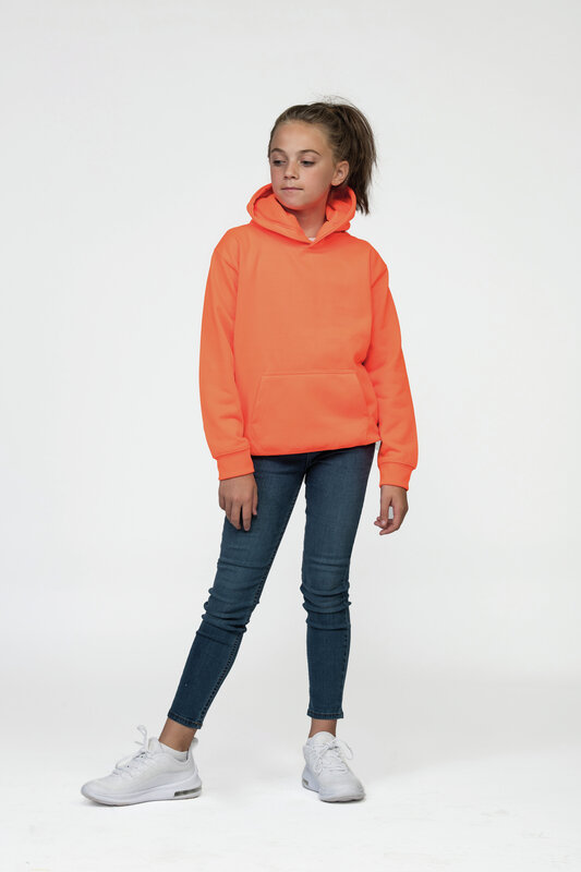 Dětská mikina s kapucí a klokaní kapsou v jasně zářivých a módních barvách.