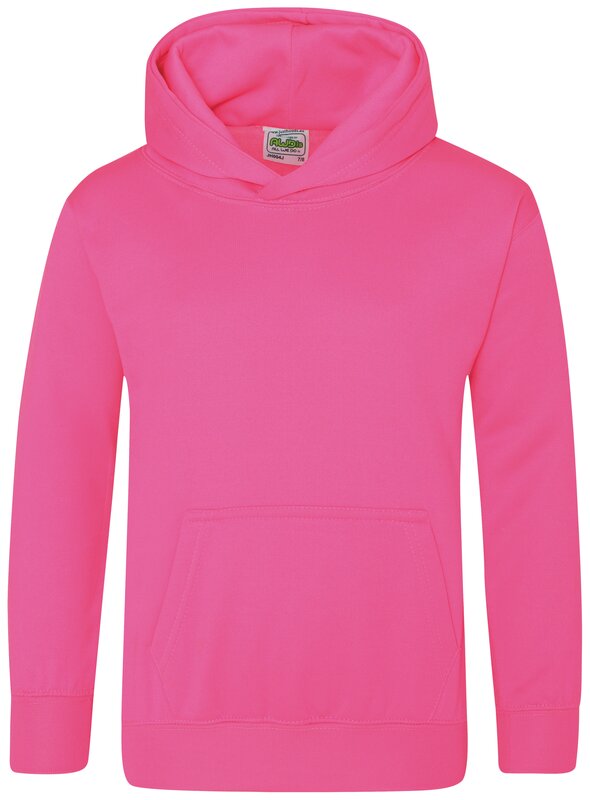 Dětská mikina s kapucí a klokaní kapsou v jasně zářivých a módních barvách.
