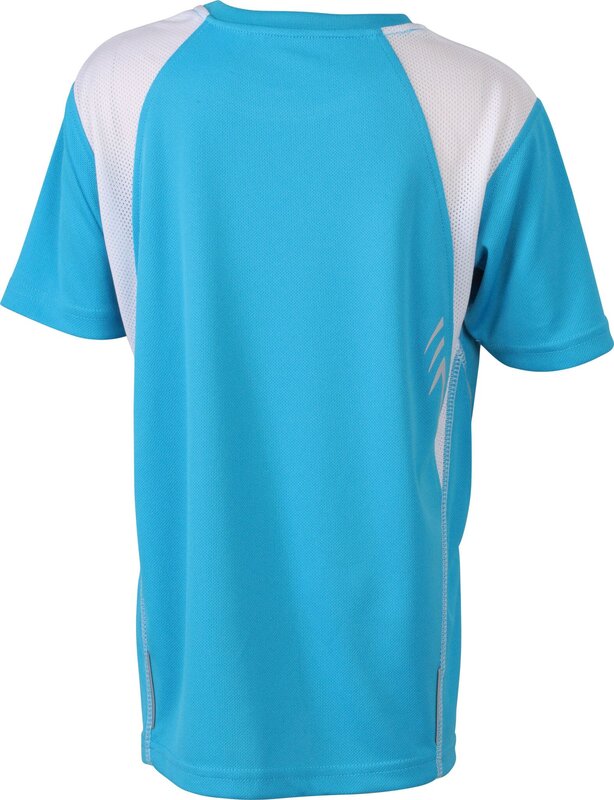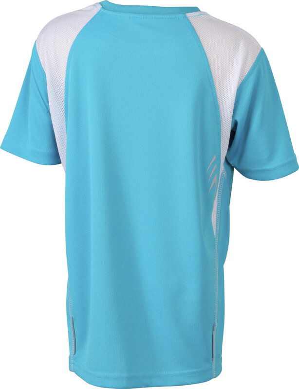 Dětské běžecké prodyšné tričko James & Nicholson s výstřihem do V. Vnější materiál: 100% polyester. Tričko je rychleschnoucí, lehké a pohodlné. Má ploché švy způsobující nízké tření, kontrastní barvy a reflexní pruhy. Mikro polyester odvádí vlhkost od pokožky na povrch tkaniny, kde se odpařuje. Hmotnost: 140 g/m².