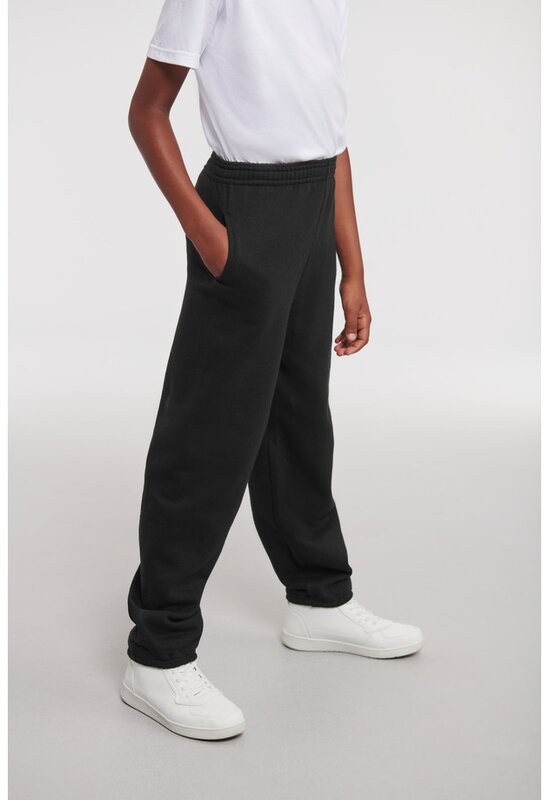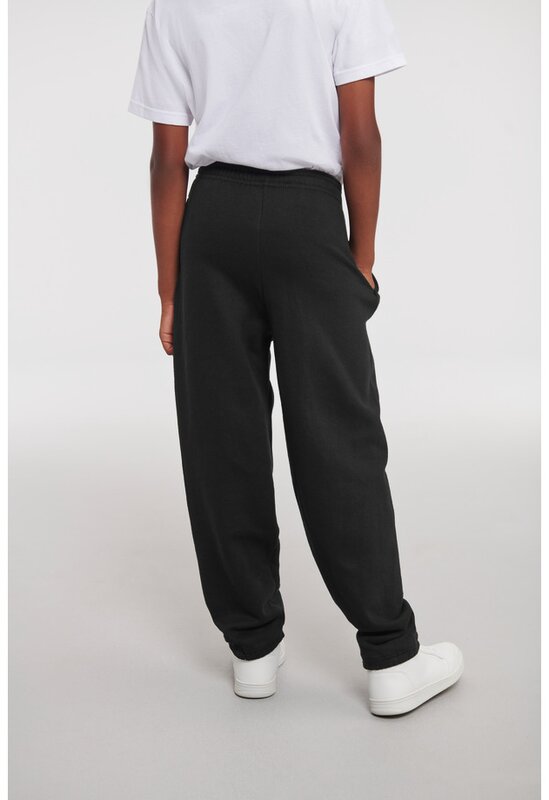 Dětské teplákové kalhoty s elastickým pasem a a koncem nohavic. Postranní kapsy. Bez stahovací šňůrky. Materiál: 50% bavlna, 50% polyester. Kruhově dopřádaná bavlna je jemná na dotek. Gramáž: 295 g/m². Lze prát ve 40° nebo nižší, vhodné do sušičky (bez potisku).