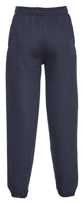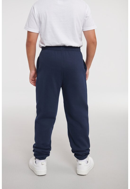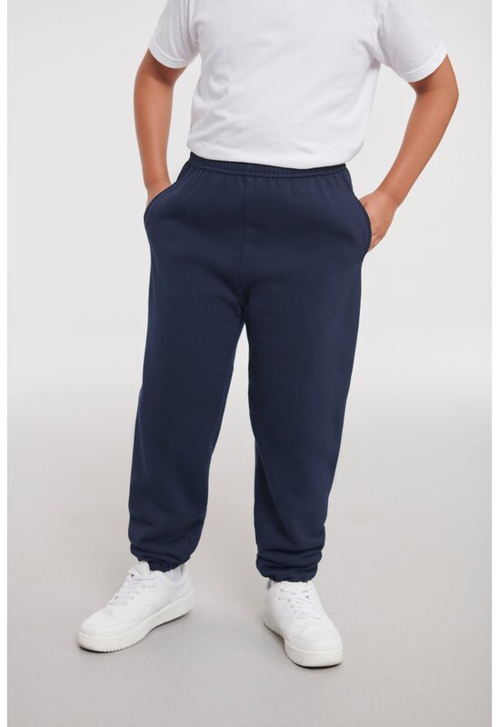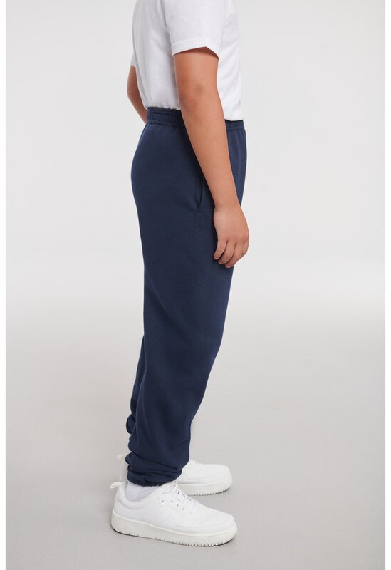 Dětské teplákové kalhoty s elastickým pasem a a koncem nohavic. Postranní kapsy. Bez stahovací šňůrky. Materiál: 50% bavlna, 50% polyester. Kruhově dopřádaná bavlna je jemná na dotek. Gramáž: 295 g/m². Lze prát ve 40° nebo nižší, vhodné do sušičky (bez potisku).