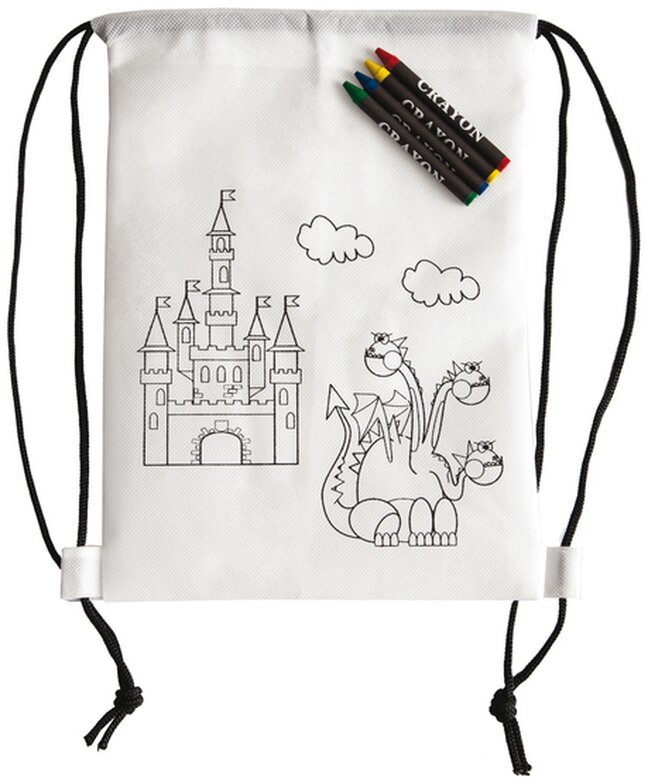 Stahovací batoh z netkané textilie (80 g/m2) s motivem pro vymalování se 4 voskovkami.