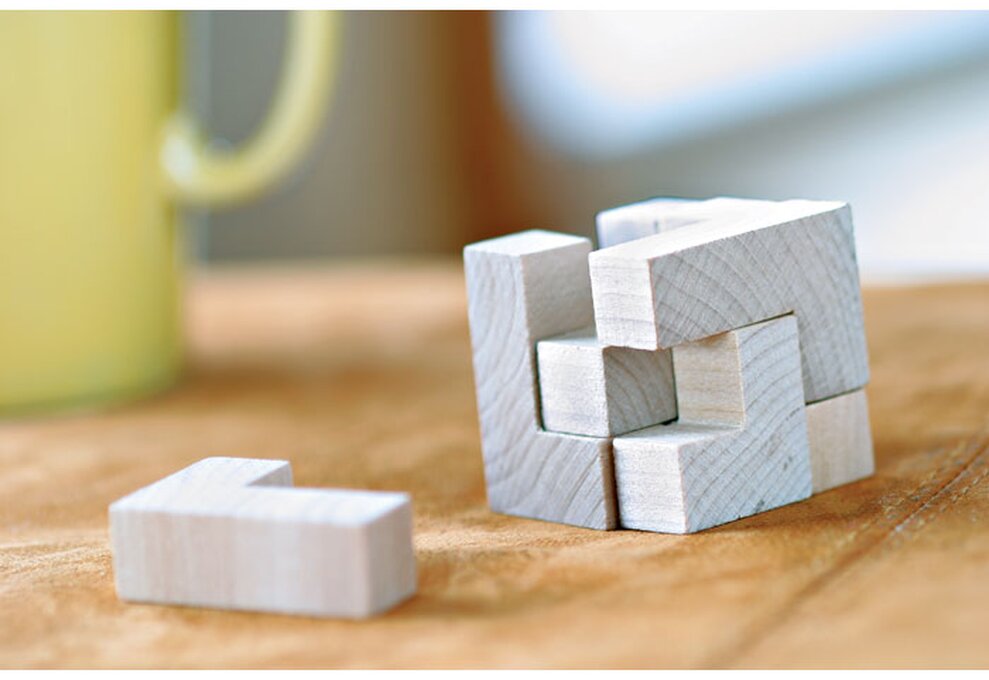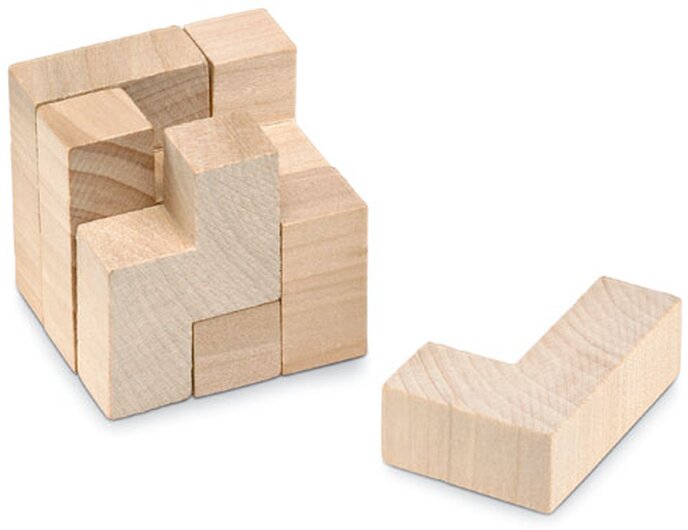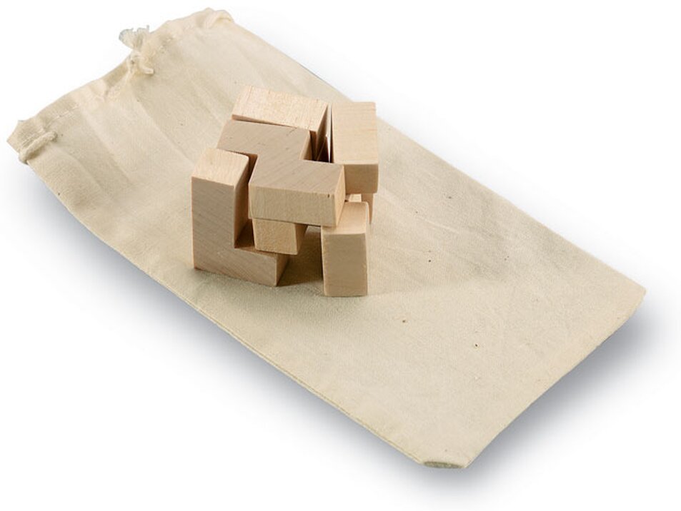 Dřevěné puzzle, 7 dílků v bavlněném obalu.