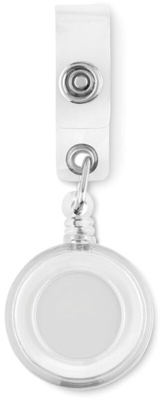 Držák na skipas s kovovým klipem a jmenovkou.