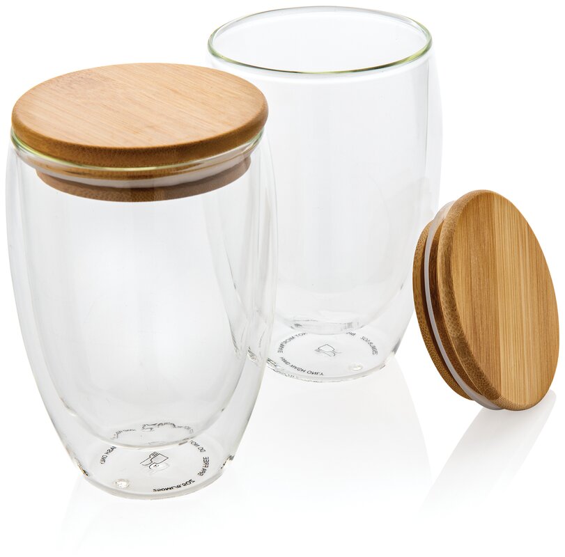 Dvoustěnná sklenice s bambusovým víčkem - sada 2ks, 350ml 026.742
