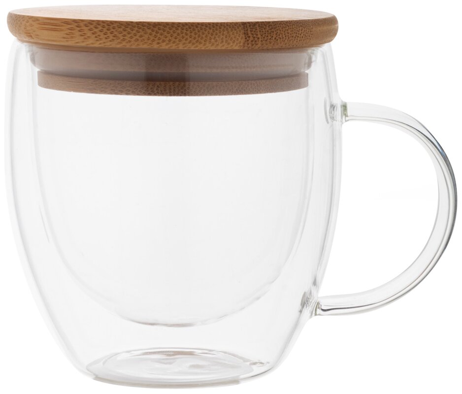Dvoustěnný skleněný termohrnek s víčkem z bambusu 250 ml