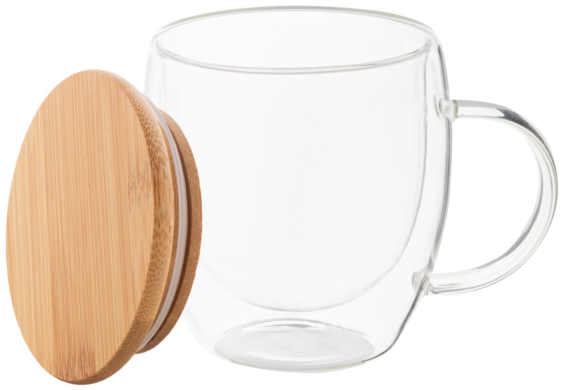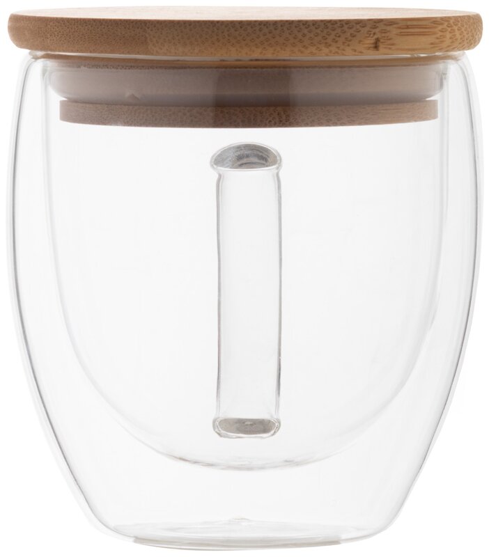 Dvoustěnný skleněný termohrnek s víčkem z bambusu 250 ml