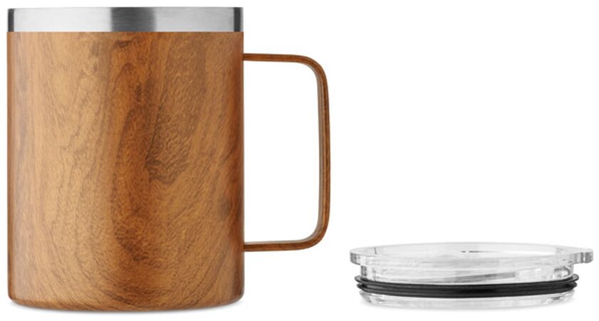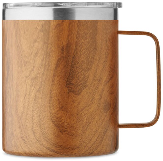 Dvoustěnný hnek z recyklované nerezové oceli (90 % recyklované nerezové oceli a 10 % nerezové oceli) s dřevěným vzhledem a víčkem s posuvným zavíráním. Objem: 300 ml.
