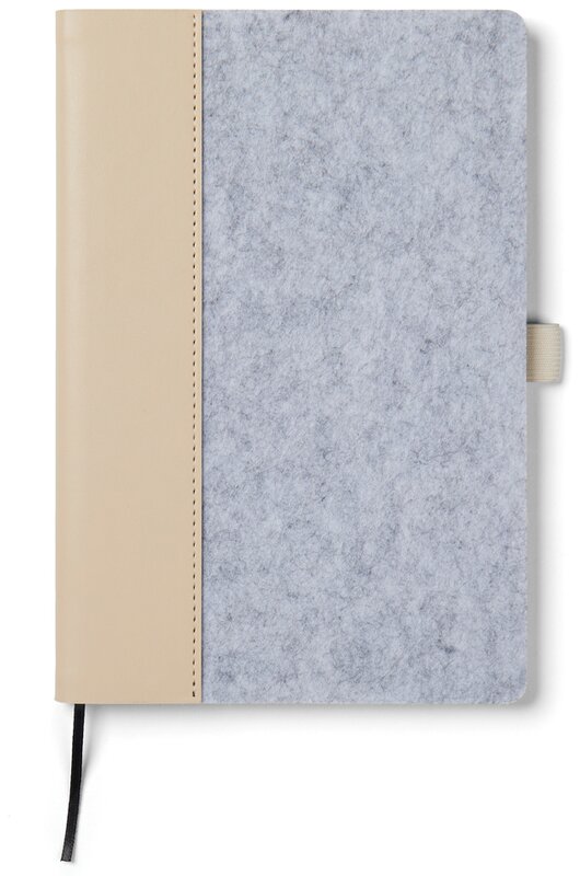 Elegantní zápisník s obalem z recyklované plsti s melanžovým efektem s integrovaným držákem na pero.