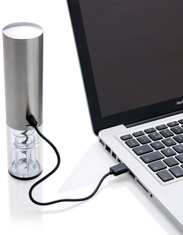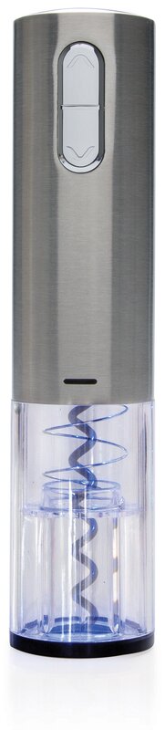 Moderní pomocník pro každého milovníka vína. Tato elektrická vývrtka s výkonnou 3,6V lithiovou baterií otevře láhev během několika vteřin. Dobíjí se pohodlně přes USB kabel, který je součástí balení, a efektní modré podsvícení dodává přístroji stylový vzhled.