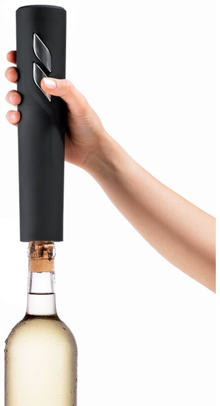 Elektrický otvírák na víno v matném černém provedení. Otvírák je vyrobený z ABS. Řezač fólie jako stojan. 4 ks baterií AA nejsou součastí balení.