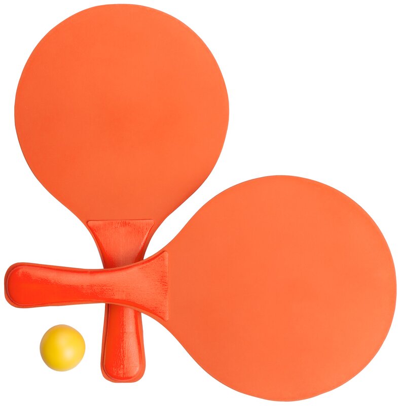 Plážový tenis s barevnými raketami a jedním míčkem, vyrobeno ze dřeva a plastu.