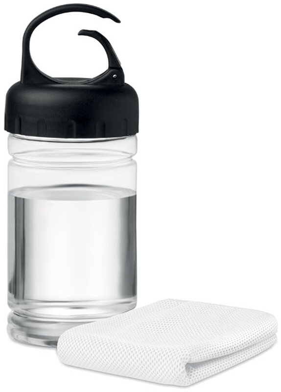 Chladící ručník ze 100% polyesteru v PET láhvi. Objem 300 ml.