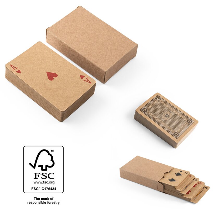 Balíček 54 klasických karet z kraftového papíru, ideální zábava na teambuilding, výlet nebo dovolenou. Dodáváno v dárkové krabičce z kraftového papíru z materiálu certifikovaného FSC™ a dalších kontrolovaných materiálů.