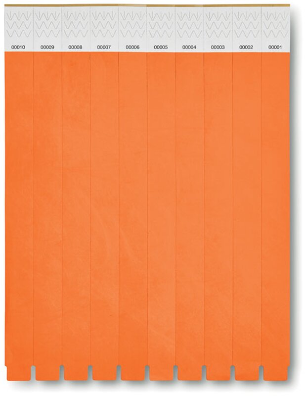 Náramek pro účastníky akcí. List 10 náramků na akce. DuPont ™ Tyvek® 19mm šířka. Obsahuje unikátní číslování na každém pásku.